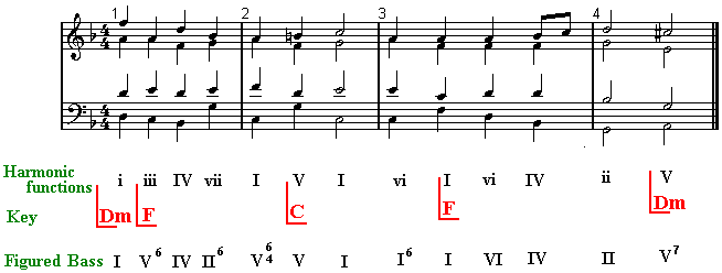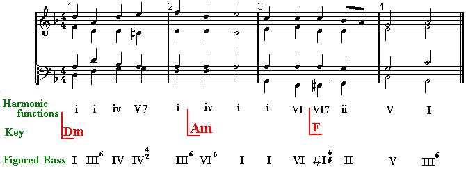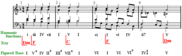 ![]() Interrelationship between Melody and Harmony Consider the first 4 bars of Bach's Chorale BMV40 (movement 6). Listen.